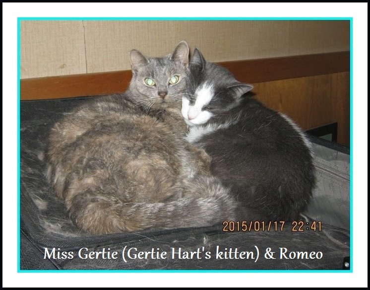 Diane's cat Finnigan featured here, in the center photo is June O'Brien, Diane's sister-in-law, and June's grand-daughter April, holding the cat Finnigan.